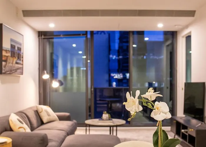 Das Apartment liegt im Stadtteil Collins Street von Melbourne City in unmittelbarer Nähe vom Crown Melbourne. Das Apartment Balcony, Free Parking, Workspace, Shared Pool & Gym befindet sich im Zentrum von Melbourne City. Die Staatsbibliothek von Victoria liegt in einer Entfernung von 25 Minuten zu Fuß von den Unterkünften.